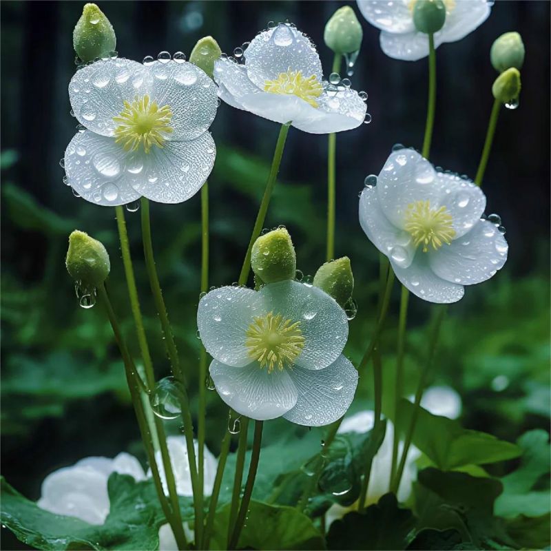 When the petals are wet, they lose their pigmentation and become translucent, offering a fascinating and unique spectacle.